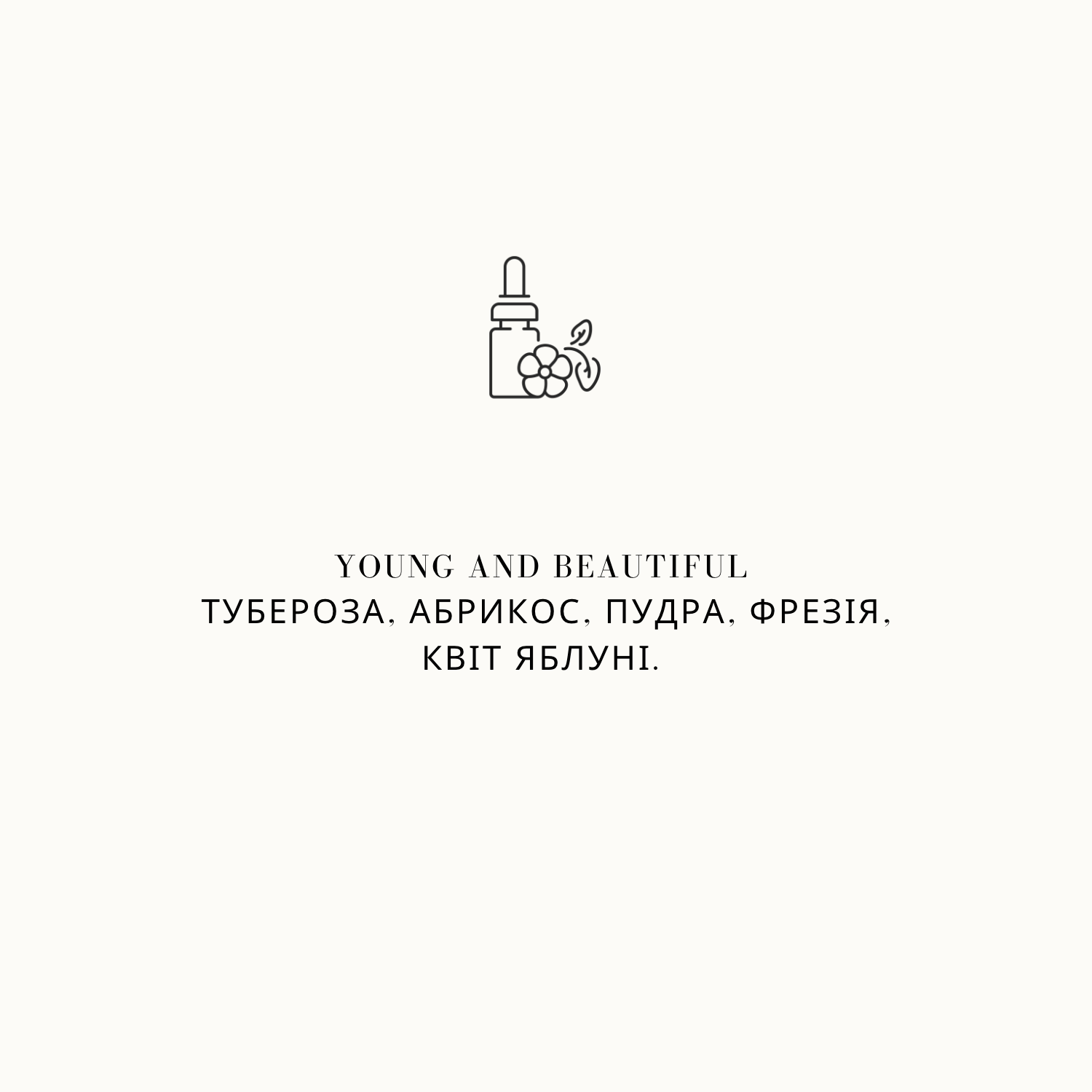Легкий пудровий аромат з ніжними нотами білих квітів ніби обіймає Вас у невагому ковдру: єдине, що хочеться зробити - віддатися коханню і відчути єдність між ароматом, Вами, простором, усім, що оточує. І от Ви вже гармонійно паруєте у повітрі і танцюєте Па де пуассон посеред квітучого саду. Легкість, невинність і відсутність законів гравітації. Одним словом ця композиція - звучання делікатних квіткових пелюстків та молодих і ніжних абрикосів.