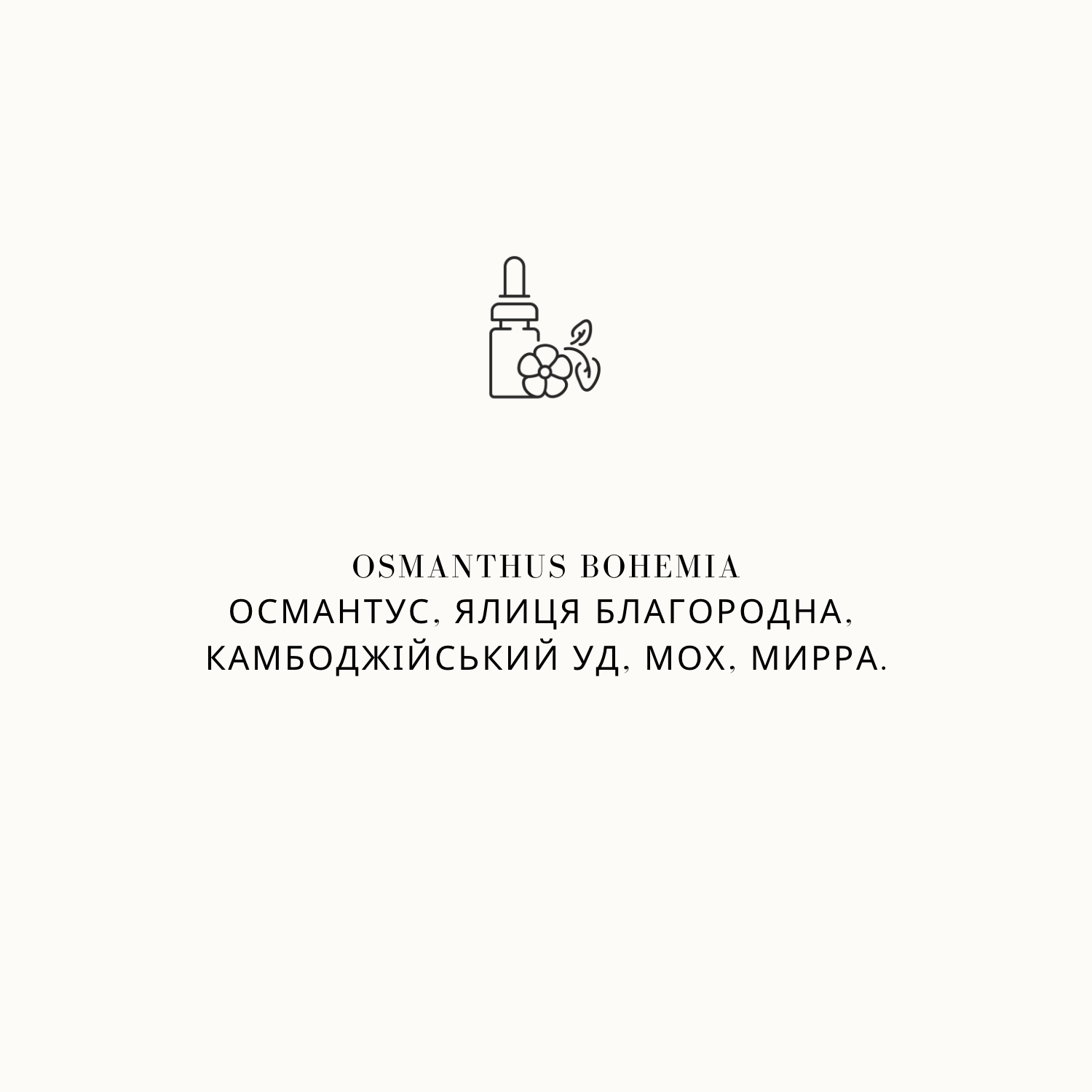 - мирра, пачулі, мох, китайський османтус, табак, вишня, ялиця благородна, камбоджійський уд.